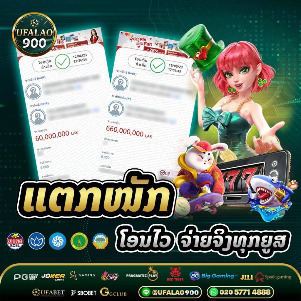 - UFALAO900 ໃຫ້ຄ່າຕອບແທນໃນການເດີມພັນສູງ ອັດຕາການຈ່າຍເງິນລາງວັນທາງເຮົາມີຄ່າຕອບແທນທີ່ສູງຫຼາຍໃນແຕ່ລະເກມ ເຊິ່ງອັດຕາການຈ່າຍກໍຈະຂຶ້ນຢູ່ທີ່ເງິນ ແລະ ກົດຂອງເກມນັ້ນໆ ເພາະບາງເກມລົງທຶນເດີມພັນໄປພຽງຫຼັກໜ່ວຍແຕ່ມີໂອກາດຄວ້າເງິນລາງວັນສູງຮອດຫຼັກໝື່ນບາດ ແລະ ທາງເຮົາເໝາະກັບການເຂົ້າມາສ້າງລາຍໄດ້ດີໆຢ່າງຫຼາຍ